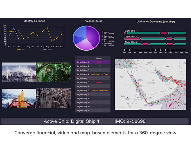 Das Unified Operations Center für die Schifffahrtsindustrie normalisiert betriebliche Einblicke in die Leistung des Betriebs, indem es Informationen aus zahlreichen unterschiedlichen Subsystemen in einer kontextbezogenen 360-Grad-Kontrollumgebung zusammenführt.