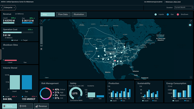 Geben Sie den Mitarbeitenden umsetzbare Informationen mit kontextbasierter Datenvisualisierung und -analyse. AVEVA Unified Operations Center für Midstream nutzt alle verfügbaren Daten, damit Teams die Entscheidungsfindung optimieren, den Betrieb in Echtzeit verbessern und nachhaltigere Ergebnisse erzielen können.