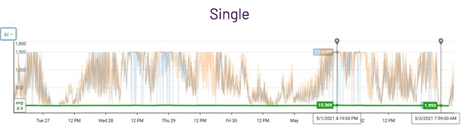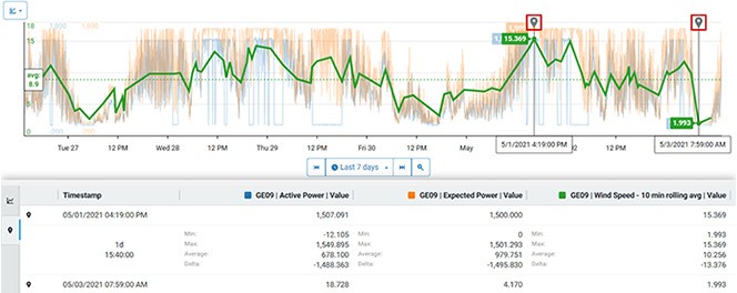 Explore your data with just a few clicks. Pin the cursors down to access useful information in the summary table underneath your trend. Once pinned, get values for the minimum, maximum, average, and even the delta (value and duration) between cursors.