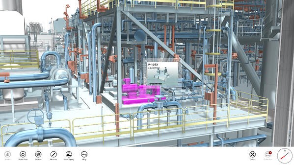 An informed decision can now be made to apply best practices and schedule repairs to both pumps to maximize asset reliability. The picture below shows an example of a navigable visualization of the digital twin.