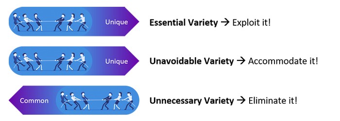 Companies starting their multi-site digital transformation journey need to keep in mind that standardization by itself is not a business goal. Rather, the goal of business is to make money by encouraging common as well as uniqueness - when appropriate. Thus, taking a pragmatic approach to standardization requires that we need to tackle the larger challenge of variety (or variability) by thinking of it in the 3 forms that exist within the business structure and the right approach to it: