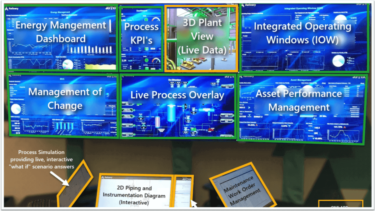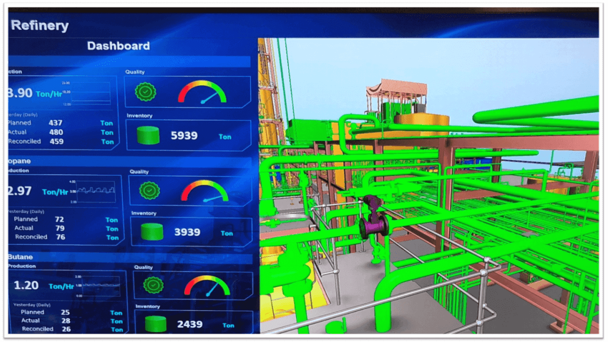 - 3D models allow operators to more quickly and intuitively understand the context of alarms, alerts, and status changes, allowing them to visualize the impact of operational status information in the context of the surrounding asset.