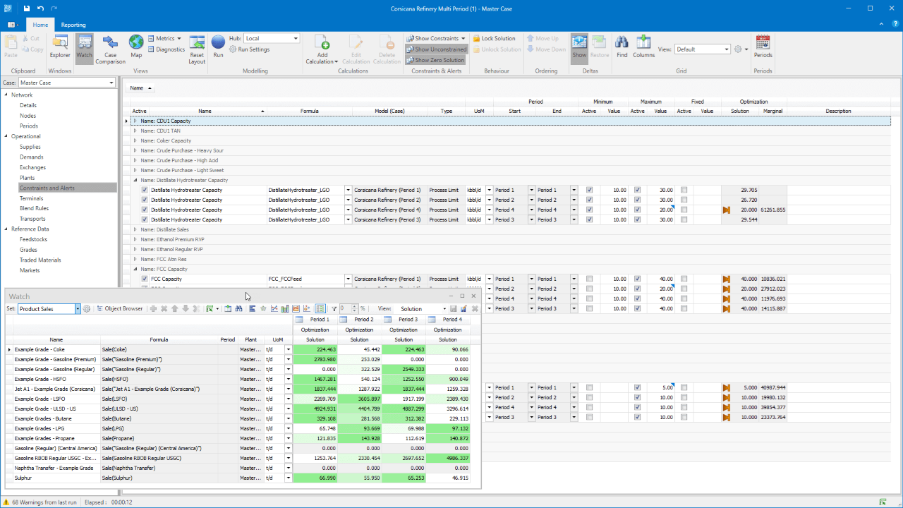 End-to-end plant scheduling including feed and blend optimization. The efficient and adaptive simulation engine is used throughout the Unified Supply Chain Management Suite that allows real-time interactions with the schedule.