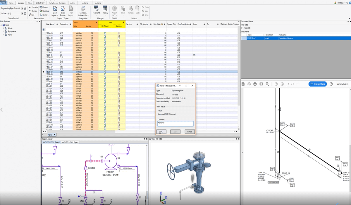 Our software solution comes with a predefined status and revision control and can be adjusted to the corporate workflow, enabling a Document Control System inside AVEVA Engineering. The user will always have access to the current uploaded revision and still can see previous revisions for comparison.