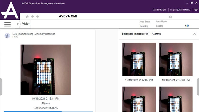 Integrated with AVEVA’s HMI and SCADA software and AVEVA™ Insight, Vision AI Assistant employs deep learning to train machine learning models. Generating alerts when an image deviates from its expected state and alert operators to take immediate action, Vision AI Assistant can increase situational awareness, lengthen equipment uptime, and prevent machine failure.