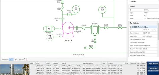 OMIで設備資産の3Dモデルを状況がわかるようレンダリングします。3Dモデルにより、オペレーターはアラーム、アラート、ステータス変更の状況を迅速かつ直感的に理解できます。プラントオペレーターは、設備資産の物理的な周囲の状況で、オペレーション情報の影響を視覚化できるようになりました。