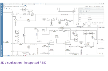 Gestión de información de activos de AVEVA proporciona una visualización web de alta calidad de los datos de etiquetas, documentos, dibujos, modelos 3D y escaneos láser. La creación automática de puntos de actividad e hipervínculos ofrece inteligencia adicional para una fácil identificación y navegación de las etiquetas.